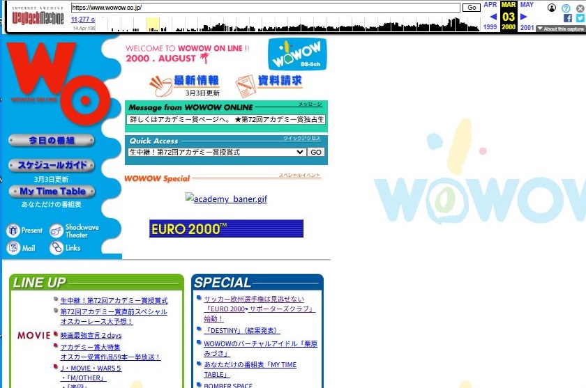 ↑よっしゃ!文字が判別できて2000年にWOWOWで独占生中継があったことがわかる!(画像をクリックするとウエイバックマシンの該当ぺージに飛びます)